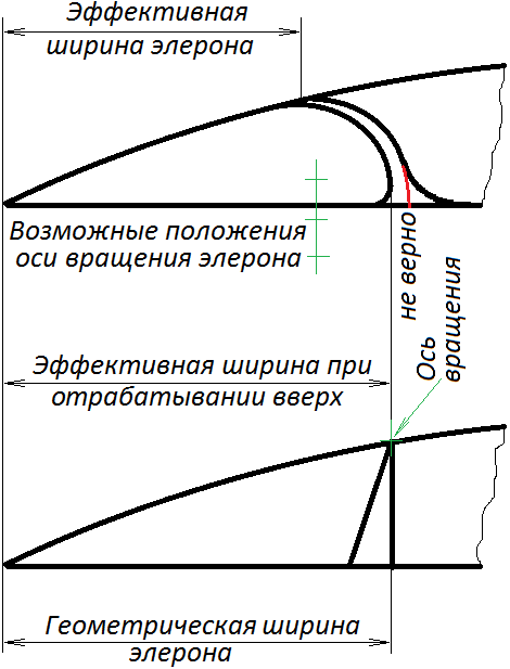 Вот я что хочу сказать: практика показала очень высокую эффективность элеронов, расположенных на месте закрылков. Не на этой модели, разумеется. По логике, должно быть наоборот: чем дальше элероны от ОСС, тем больший момент они дают. Элероны, расположенные на своих штатных местах, бесполезны на всех режимах с выпущенными закрылками. На скорости они там еще как-то вяло, но работают. Даже более того: такой эффект проявлялся и на прямом крыле Ан-140. Интересно почему?