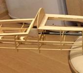 Шпангоуты, как у вас, все такие “дырявые”, можно легко доработать для стапеля ! Все разбираем ! На ровной поверхности чертим вертикальную и горизонтальную линии, в середину устанавливаем отрезок трубы стапеля ! Распределяем шпангоут относительно осевых линий и обкладывам его полосками бальзы !