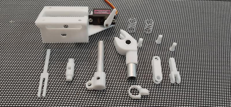Напечатано 13 деталей, качалка для сервы увеличена по длине на 7 мм и так же напечатана, так как длина той что в наборе не позволяет двигать кулак ретракта в крайние точки.
