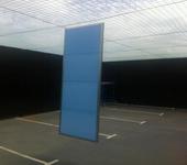 Вот полигон почти готов. Натянуты стальные тросы, поверх них капроновая сетка. Тут получилось почти без провисания - из-за жесткости всей конструкции коробки удалось очень сильно натянуть тросы.