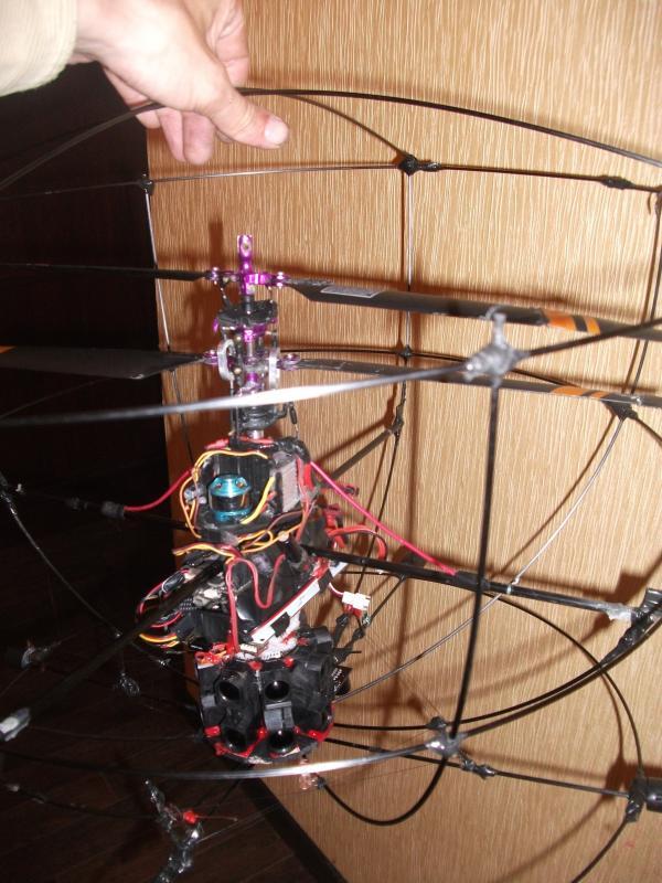 По моему плану из трех колечек собирается шар, в центре шара мотор. Четыре шара соединяются вместе, в каждом по мотору. Из стеклопластикова прутка конструкция получается не убиваемая, но вес 300 грамм. Пока от этой идеи отказался.
