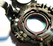 На фото - оптический стабилизатор 24-105 4L IS USM, устройство механизма парковки линзы.