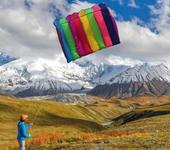 Я сейчас остановился на небольшом змее из капролона 130х75см, весом около 200г (см. фото)