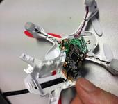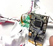 Далее следует отвободить обе платы от всего - отпаять моторы, светодиоды, антенну, закрепить плату в чем то подобном: