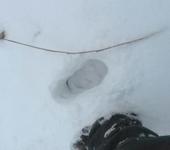 После обеда пошел густой снег, даже стал засыпать мои следы. Засим понял, что дальнейшие поиски бесполезны 😦 Нужно ждать когда сойдет снег.