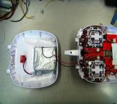 я вижу, у тебя версия дрона с оптической стабилизацией. у меня такая же,но начинка пульта другая: слева находится антена wi-fi с платой прд, а справа плата прм gps. и не “разваливается” на две половинка, как у тебя -мешают провода.