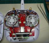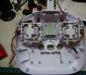 я вижу, у тебя версия дрона с оптической стабилизацией. у меня такая же,но начинка пульта другая: слева находится антена wi-fi с платой прд, а справа плата прм gps. и не “разваливается” на две половинка, как у тебя -мешают провода.