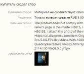 Привет! Повторюсь, при открытии спора я выбрал - несоответствие описанию, возврат только средств. Потребовал 10к, доказательства загрузил страничку продавца где было написано , что он “оригинал Hubsan 501s”, фото с монитора пульта где версия ss (см.выше-3 стр.) и фото поцарапанного квадрика (на тушке какие то следы похожие на царапины). В этот же день предложили половину , а спустя пару часов возврат всей суммы, но с возвратом квадра. Вот и все.