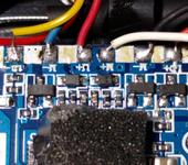 Теперь взял свежую версию с картой памяти и камера 2мп ( китайских, я так понимаю ). Пролетел метров 20, и умер правый задний двигатель( точнее силовой транзистор выгорел). Двигатель постоянно плавно крутит даже в выключенном состоянии( отключается только питание контролера , силовые транзисторы подключены прямо к батарее). По маркировке 2310 определил тип MTN2310N3 V DS 60V , I D 4A . Под рукой нашел мосфеты на старой материнке. Прилепил сбоку, не завелось.Моргает светодиодами квадрик и пульт , не стартует.