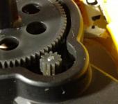 У меня заработал с замененным мосфетом от материнки( раньше просто глючил при старте ). С шестеренокой устранил проблемму - снизу вклеил небольшой пластиковый клин , чтобы шестерни поджать к друг другу. Смещение буквально 1 мм , теперь все работает.