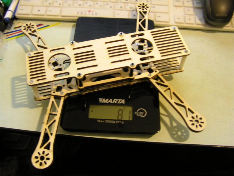 …летающие кирпичи в этом формате никак не вдохновляют… Выигрыш по весу в сравнении с предыдущей конструкцией составил 25гр. Ну и плюс поток от винтов почти ничто не тормозит. Накинул все оборудование, попробовал подлетнуть и офигел - раньше отрыв и висение были примерно на полгаза, стало на треть! Но к сожалению время полета засечь не удалось, по неведомой причине пыхнул один регуль…