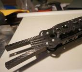 получилась у меня такая вот складная рамка 280мм размера под 6-дюймовые винты . вся конструкция выполнена в честном карбоне собственной выделки, включая моторные лапы из трубок 9х13.5 . жесткость - монолитная . вес собранной рамы составляет 80гр вместе с PDB-шкой. размещение ESCs подразумевается около PDB-шки внутри рамы. размещение батареи возможно по двум вариантам : для 3D колбасни ставим липольку на верхней палубе и достигаем почти идеального весового баланса по вертикальной центровке , а для FPV вешаем батарею под брюшко ( там есть прорези для велкрошных ремней) и получаем более устойчивый по горизонту агрегат. так же предусмотрены места для установки автопилота и видеолинка
