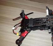 Добавлю еще по поводу упора аккумулятора. Забыл коврик под аккум дома, но решил что всё равно политаю. При падении на скорости метров с 4 мордой вниз нижняя пластина прогнулась и акум выскочил вперёд. Уперся между упором и платой питания немного изогнув её. Решил в срочном порядке укрепить нижнюю пластину и вставить приставку перед аккумом.