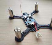 Сначала поставил полетный контроллер(от Hubsan x4) на крышу “башенки”- аппарат летает ужасно, летит влево, отриммировать не получается. Переставил контроллер на поверхность рамы внутри “башенки”- вроде стало сильно лучше. Одновременно был заменен материал прокладки на более мягкий. Что повлияло- х.з.