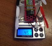 Вес самой рамы получился 4.5грамма. Квадрик в сборе стал весить 45грамм. Что очень сильно сказалось на времени полета и на динамике.