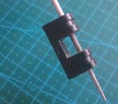 Процесс сборки несколько отличается от представленного в видео. Как оказалось, процесс подгонки деталей занимает достаточно много времени. Сначала шкуркой 150 подгоняем две детали механизма наклона мотора. Когда детали начинают двигаться свободно относительно друг друга, убираем грубые царапины шкуркой 400, а потом заполировываем шкуркой 1000. Так же в видео не указан важный момент - необходимо круглым надфилем слегка расточить отверстия на детали, которая прилегает к раме (см.фото). Винтик должен свободно проворачиваться в этой детали, но в то же время не люфтить. Если винтик не будет свободно вращаться в этой детальке, то механизм наклона мотора будет ходить туго.