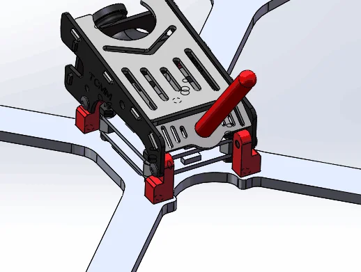 Я вот что думаю: если эта рама изначально проектируется под камеры крепящиеся двумя винтами, и угол подъема камеры небольшой (около 30 градусов, если я правильно намерял), может быть стоит предусмотреть какой- нибудь выступ или деталь, дополнительно фиксирующую камеру в верхнем поднятом положении? Вряд-ли ее будут опускать ниже.