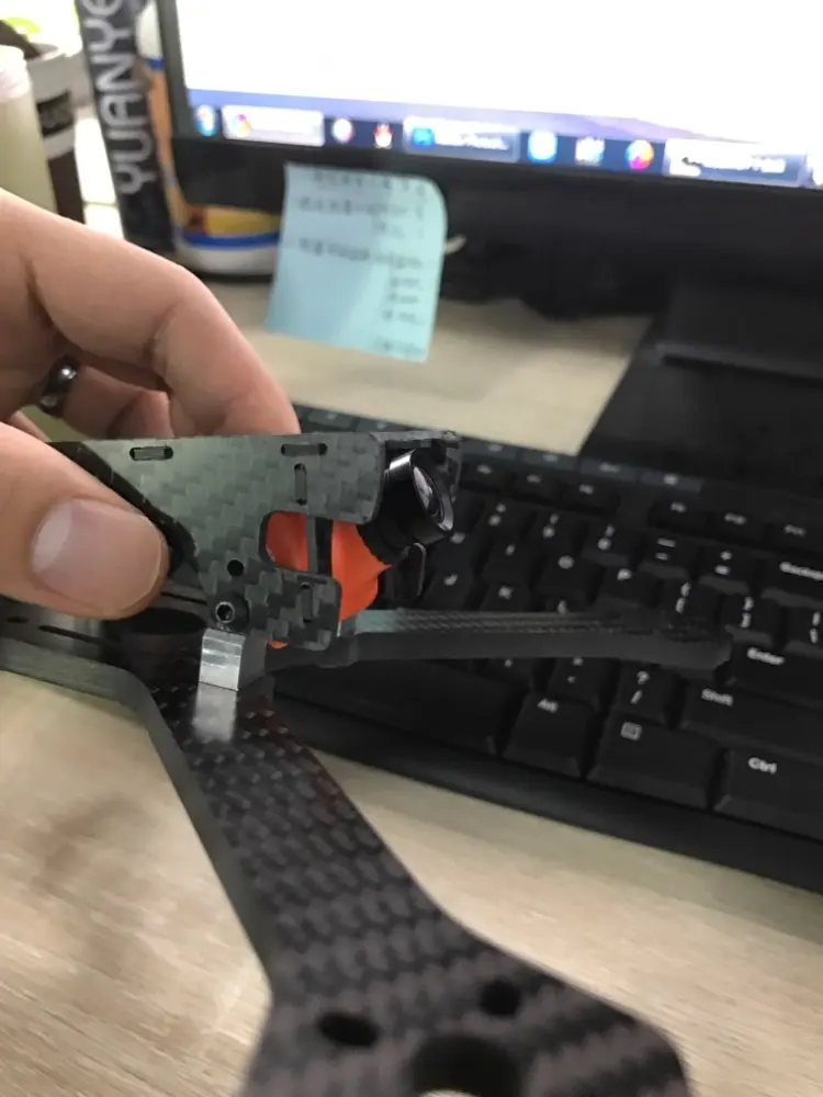 А как планируется крепить курсовую камеру? Резинкой к распорке над ней? Двух винтов явно мало - угол будет сбиваться при каждой посадке .