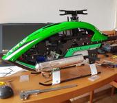 Редуктор от 580 с небольшими изменениями, на нитре все это дело будет жить без проблем! На бензине подавно, я посмотрел ради интереса пару роликов на ютуб, моторчик конечно ощутимо слабее нитры тянет…но я смотрел полеты рекса 700, который весит почти на пол кило больше)