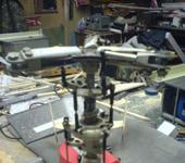Этот вертолет строился около 20 -лет тому назад когда модельных гироскопов еще не придумали. Двигатель, если мне память не изменяет 10 кубов, автомат перекоса - копия ка-50 (с небольшими изменениями). Торсионы изготовлены из торсионов от того-же ка-50. Это все что я скажу. Автор этого вертолета не велел выкладывать информацию, поэтому увы…