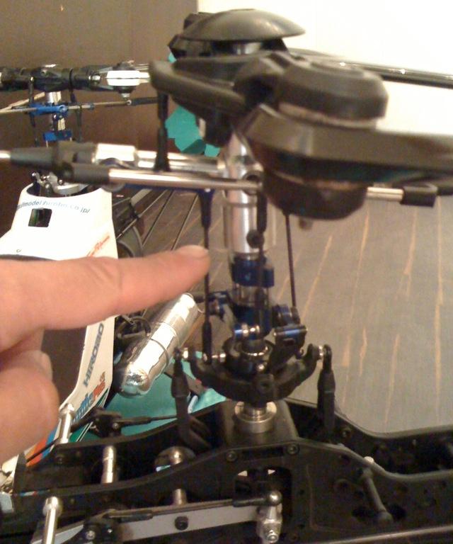 На фотках не совсем хорошо видно механику этого вертолета, но… Смотрите болтики. Один крепит шестерню авторотации к главному валу, второй крепит голову автомата перекоса к главному валу. Болтики находятся в низу и в самом верху вала соответственно, проходят сквозь вал, и, с обратной стороны, должна быть гайка посаженая на локтайт.