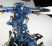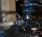 немного изменили конструкцию - swashplate bracket сделали пластиковым как в оригинале. Металл там не зер-гут. Гнется при крашах и еще издает в полете посторонний звук. Хаб чуть расширили - до этого был узковат. Устранили латунные втулки в рамке микшера флайбара. На фото видно - там теперь фланцевые подшипники как и положено быть.