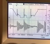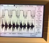😁Ну вот последняя порция,надеюсь устроит,первый снимок -это как всё меряется,второй верхняя часть -это напряжение с обмотки,нижняя -ток в этой обмотке.катушка 9.9 Ом сопротивлением,690 мкгенри индуктивностью.обороты мотора 26700,мотор нагружен на свою механику с флайбаром и хвостовыми лопастями,гувернёр 2100 оборотов.