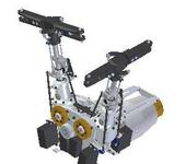 А отчего такая кинематика сложная в предложенном варианте реализации? Можно двиг и снизу вертикально поставить, а ведомые шестерни на коаксиальных валах, как у соосников. Отклонения валов роторов обеспечить посредством применения карданных шарниров от моделек авто. Серв, по-моему, тоже многовато. Тарелки перекоса вполне можно запараллелить и организовать управление по той же схеме соосника.