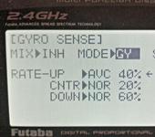 Так стоп: когда вы переключаете режим STD на GY тогда в настройках у вас получается NOR это гироскоп в режиме без удержания и значение чуствительности для этого режима, и соответственно когда AVC это гироскоп в режиме удержания и значение чуствительности для этого режима.Вот на втором снимке у вас стоит тумблер где 40% AVC это значит режим удержания с чуствительностью 40%.