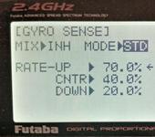 Так стоп: когда вы переключаете режим STD на GY тогда в настройках у вас получается NOR это гироскоп в режиме без удержания и значение чуствительности для этого режима, и соответственно когда AVC это гироскоп в режиме удержания и значение чуствительности для этого режима.Вот на втором снимке у вас стоит тумблер где 40% AVC это значит режим удержания с чуствительностью 40%.