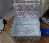 Замечательный такой металлический ящик из под прицела авиационного. Обклеил его изнутри вспененным утеплителем в фольгой. Получилось компактно, удобно, противоударно, теплосберегающе.