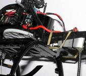 Ну и после недавнего краша - наконец-то (пришлось перепаять все борт провода) переставил контроллер БК из под трэя в наиболее безопасное место - между мотором и главной осью - теперь его вряд ли замкнёт при следующих крашах. На место 4й сервы переставил импульсный 6В 5А Маркус БЕК. Питание в приёмник припаял отдельными проводами, ну и приёмник в фольгу завернул заземлённую. Поставил везде блокировочную керамику в дополнение к электролитам и кольцам. А под освободившийся трэй закрепил камеру, передатчик и фильтр питания для них. Надеюсь всё-таки опробовать видео передачу в очки не только по земле (первая попытка прикрутить камеру с передатчиком к ДВС самолёту окончилась потерей объектива камеры - вибратор блин).