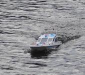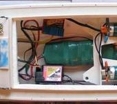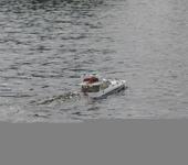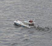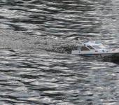 Приёмник в данный момент стоИт от аппаратуры Radio 3ch (27 mHz) - была в комплекте к Goldeagle XL. Распаянные на поате сервы выкинуты напрочь, вместо них подключена серва от аппаратуры “Сигнал”. Для её установки расточено бывшее крепление стандартных мотоустановок. Вместо стандартных - 2 мотоустановки Graupner Multispeed 140. Аккумулятор (нет на фото) - 6 банок 900 mAh. Идёт катер неплохо, не FSR естессно - но из воды на 1/2 корпуса выпрыгивает в лёгкую 😃 Манёвры правда делает лениво…