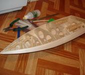 Здавствуйте, уважаемые участники, гости и модераторы!! Огромное количество времени я провел за чтением различных статей, сбора информации данного форума, изучения чертежей рисунков, их анализа. И вот, по прошествии двух месяцев, я накупил: лист фанеры метр на метр, реечки (штапики), клей, и прочий материал для постройки. В ходе некоторого времени возникло то, что вы видете на фотографиях, относится данная постройка к классу FSR. Хотелось бы услышать ваше мнение, мысли о постройке, какой выбрать движок, а так-же целесообрзно ли было применне бальзы 2мм. для обшивки данного судна. Просьба говорить, что думаете, я обсуждения и критики не боюсь. Спасибо. Размеры судна 70 - 24 - 13 см.