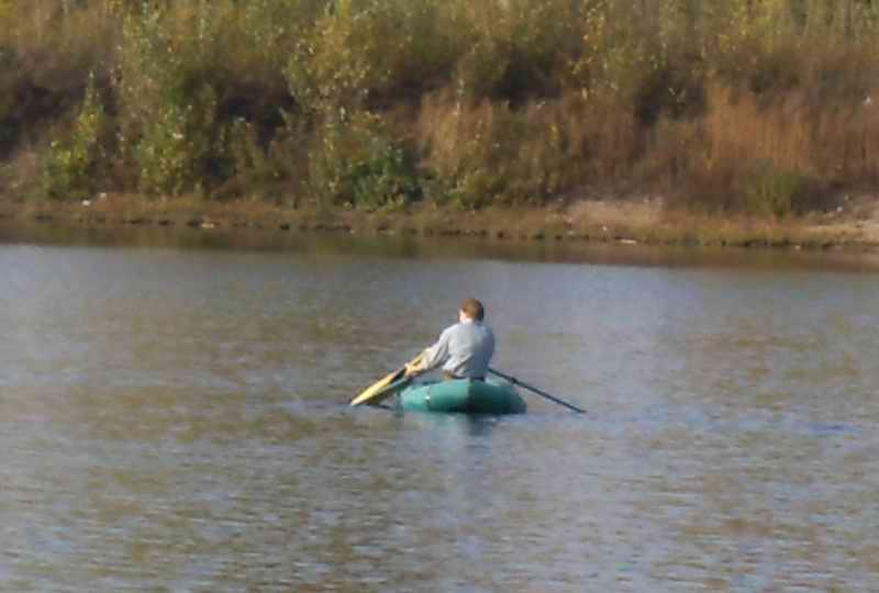 Лодка одноместная, покупал за 2400 р полный комплект. Для холодной воды купил за 200 р бахилы выше колена.