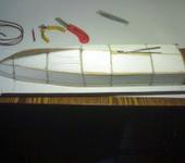 Длинна лодки 65 см а ширина 15см. Фотку внутренностей смогу сделать только когда обклею стеклом, коркас на стапеле закреплён. Мне советовали оклеивать его пока он на стапеле. Так что фотки будт немного попозже.😃