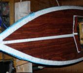 внути лак по деревянному набору.оцинковка по причине дешевизны.вес без палубы и блоков непотопляемости как на фото 4.5 кг.полный уточню после грунтовки. сейчас установлена палуба.люминь конечно легче.а вообще то это эксперимент и проверка технологии .а экология для аллергиков идеальная.
