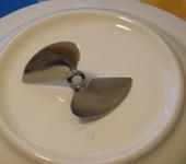 Господа, посмотрите, вот попилил родной винтик, скажите нормально? Убрал от края по 2.8 мм, теперь диаметр винта почти 72 мм. Ну, естественно, потом полировал с водичкой сначала 400-ой наждачкой, потом 1500-ой, а затем войлоком.