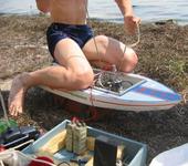 Пока Вы не сделали поспешных действий выслушайте - двигатели для “машинок” и для “посудин” это разные вещи, они работают в разных режимах. если к примеру из автомодельного двигателя можно(конечно изврат редкосный) сделать судовой двигатель, то обратное к сожалению неполучится.