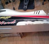 Фанеру из радиобокса выкинул (давно мечтал). Теперь там довольно толстый и жесткий текстолит. Китайскую серву поменял на серву Sanwa. Ну и апаратура теперь Sanwa RD6000 Sport. (6 каналов, 40 мГц), с неподпружиненным газовым джостиком(всегда о таком мечтал). Тоесть теперь можно в одиночку заводить, выставлять нужные обороты и кидать на воду, а не как раньше…прищепкой зажимал ручку газа 😁