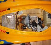 В общем обещанные фото, двигатель снят ибо надо восстановить крепление двигателя. Да и разбирал смотрел в каком состоянии движок. Глушитель “мокрый”, снят. Уже мечтаю о “дудке”)) Бокс - пищевой контейнер двигатель стоковый дальше некуда… забор воды с днища… Электроники нет продал за символические деньги, ибо идёт уже новая, аккумулятор Robbe 4.8 В 2000мАч, машинки тоже Robbe FS-200, аппаратура Futaba FF-6 (T6EXP). Вот теперь нужны советы по железу и как всё это грамотно ставить. Да Сергей я у вас после нового года закажу глушилку)) Хотел сам собрать, но нет программатора для PIC контроллера😁