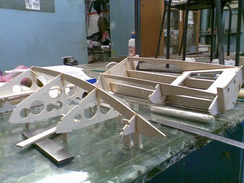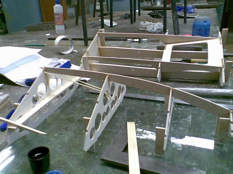 Следующим шагом буду дорабатывать оставшиеся мелкие элементы скелета и формировать первичную обшивку из бальзовых листов. После корпус будет покрыт стеклотканью и усилен углетканью, либо арамидом, если удастся купить их по разумным ценам. На данном этапе вес скелета 1985 грамм.