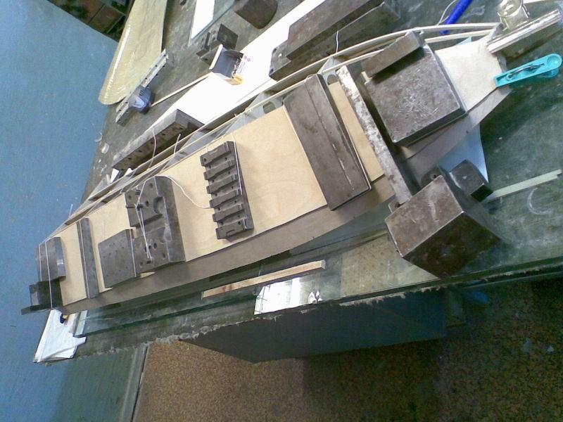 Между тем, дело медленно, но верно идет вперед. Гнул, строгал и шкурил деревяшки. В итоге выгнул и вклеил 4/5 нижней части середины, а также сделал заготовки для обшивки бортов, но их пока не вклеил, поэтому не запечатлил. Стремился минимизировать зазоры даже не смотря на то, что покроется стеклотканью после. Результат ниже на фото.