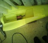 Серва едет вместе с регулем и UBEC om HXT HX12K 55г / 10кг / .16сек водозабор сделал сам.в днище вклеел две трубки спилиные под углом 45 градусов и направленные вперед.внутренний диаметр 4 мм одна для охлаждения мотора вторая для регуля вывод воды тоже вклеел в транец.Проблемка с покупкой руля.Струт выходит от транца на 70 мм плюс торчит наконечник гибкого вала с конусом .В итоге вся конструкция 93мм.Вывод:нужен руль с расстоянием от транца до начала пера 95-100мм.а таких негде нет.может чтото посоветуете кроме смещения в бок.