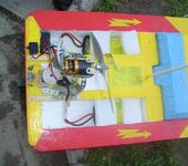 А если бутылки развести сантиметров на 10, а между ними не поставить немного спереди одну маленькую. С устойчивостью проблемм явно не будет, да и видок наверное станет поприличнее. А из 4-й бутылки (или из половинки) можно герметичную надстройку сделать для элексроники. Я просто тоже хочу таким способом куда-нить пристроить свой ДВС самолетный. (забыл правда какой - самый мелкий из ASP) 😒