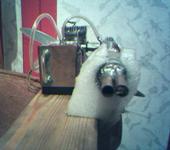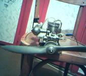 А вот и моя Радуга 7М на стенде (вон та большая медная штука - глушитель (работает очень тихо, можно в комнате запускать 😛 ) и бак самодельный примерно 100см. куб.) фоткал на телефон.