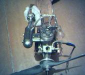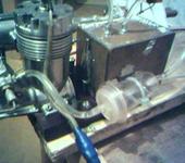 А вот и моя Радуга 7М на стенде (вон та большая медная штука - глушитель (работает очень тихо, можно в комнате запускать 😛 ) и бак самодельный примерно 100см. куб.) фоткал на телефон.