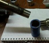 Теперь на патрубок точим вот такую рубашку, собственно конструкция не замысловатая можно нарисовать под свои расклады, но кому тяжело буду в мастерской скину эскиз с размерами. Чем такая конструкция хороша, во первых вода имеет прямой контакт с патрубком, отвод тепла при такой конструкции лучше и не придумаешь, второе, для герметизации используются силиконовые колечки, если патрубок кривой не ровный или овальный (не сильно конечно) колечки компенсируют все это.