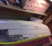 Вернулся к Офшору - шкурить корпус , это был 4й или 5й день шкурки - окончательный или промежуточный - вывел корпус в 0 ушла 1кг банка шпаклевки Body Light чтобы поймать все ямы . Натер разделителем матрицу верха - начинаю собирать 2й корпус V27 - мне кажется этот уже тяжелый (11.5кг заправленный 2.2литра бензика )