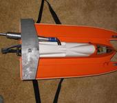 Имеется такая пасудина, примерно на пол газа выходит на глиссирование идет как по рельсам, стоит дать на всю катушку включается труба и она почти взлетает идет на кончиках попловков, вчера скрутила петлю 😦 … предпологаю что промах с центровкой… 😦